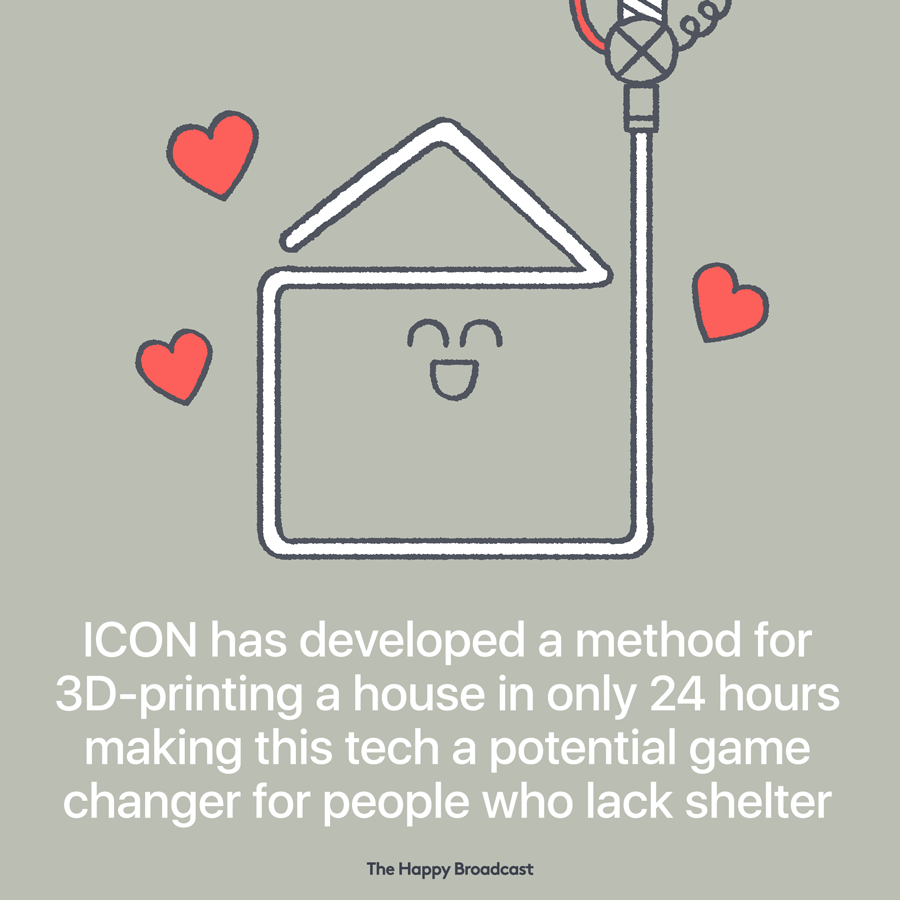 1.2 billion people in the world live without adequate housing and ICON, an Austin based company, has a big vision to create sustainable building practices that make beautiful, quality homes accessible to everyone.⠀ ⠀ ICON has developed a method for 3D-printing a single-story 650-square-foot house out of cement in only 12 to 24 hours, a fraction of the time it takes for new construction, and for less than $4,000.⠀ ⠀ Human-built equivalent houses take between 13 to 20 days to build, making this tech a potential game changer for the people who lack adequate shelter.
