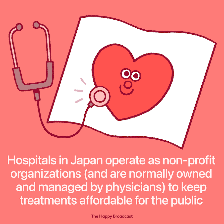 Hospitals in Japan fundamentally operate as non-profit organizations and are normally owned and managed by physicians. The Japanese government oversees and strictly regulates medical fees to keep treatments affordable for the public.