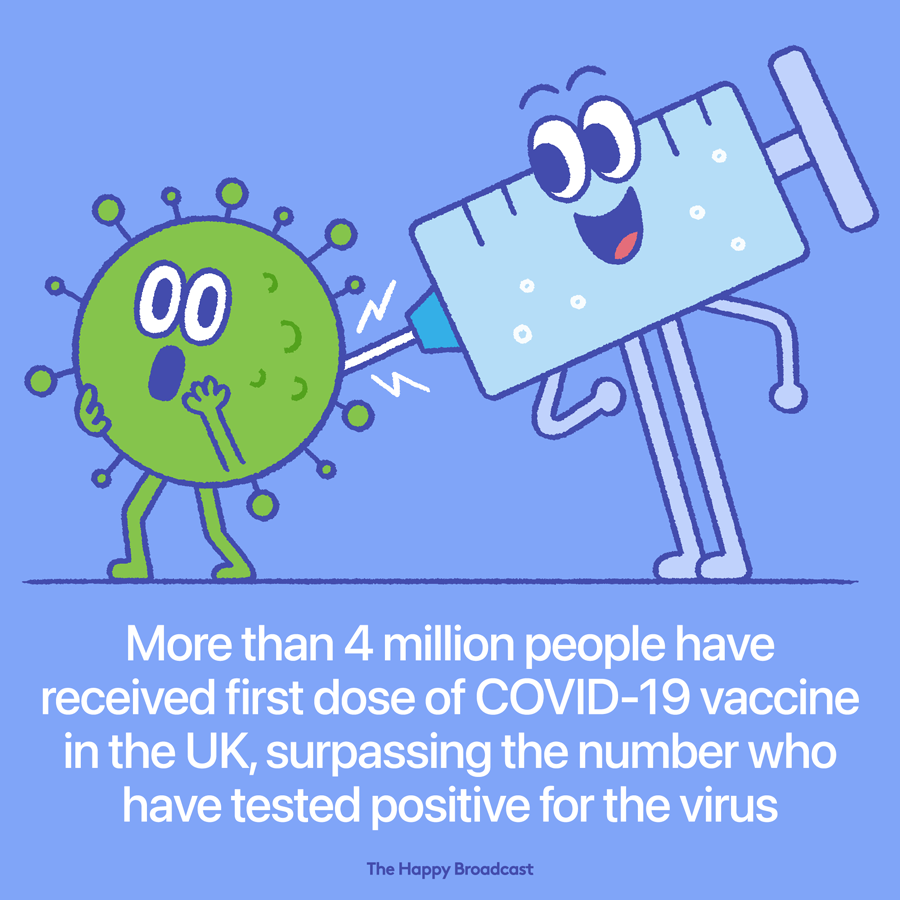 More than 4 million people in the UK have received their first dose of a COVID-19 vaccine as part of the largest vaccination programme in British history.