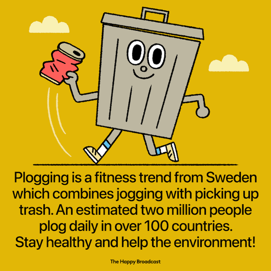 Plogging is a combination of jogging with picking up litter, merging the Swedish verbs plocka upp (pick up) and jogga (jog) gives the new Swedish verb plogga, from which the word plogging derives.