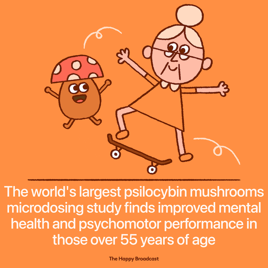 The paper shows how psilocybin (or magic mushrooms) microdosing is associated with general improvements in mood and mental health. Additionally, a finding specific to individuals over the age of 55 indicated that microdosing was associated with greater improvements in psychomotor performance relative to non-microdosers.