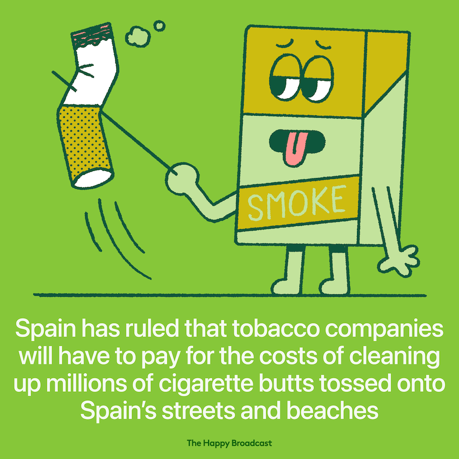 [https://www.euronews.com/green/2023/01/04/tobacco-companies-must-pay-for-clean-up-of-discarded-cigarettes-in-spain](https://www.euronews.com/green/2023/01/04/tobacco-companies-must-pay-for-clean-up-of-discarded-cigarettes-in-spain)