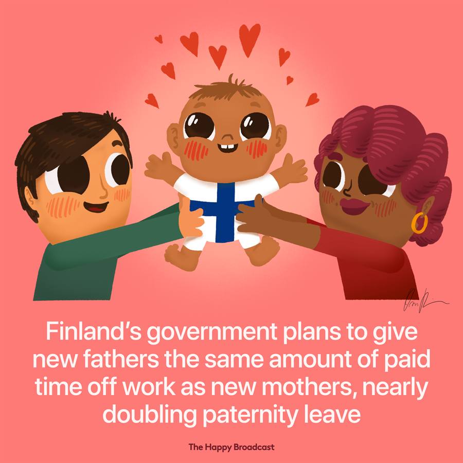 Source: [https://www.cnbc.com/2020/02/05/finland-to-give-men-and-women-equal-paid-parental-leave.html](https://www.cnbc.com/2020/02/05/finland-to-give-men-and-women-equal-paid-parental-leave.html)