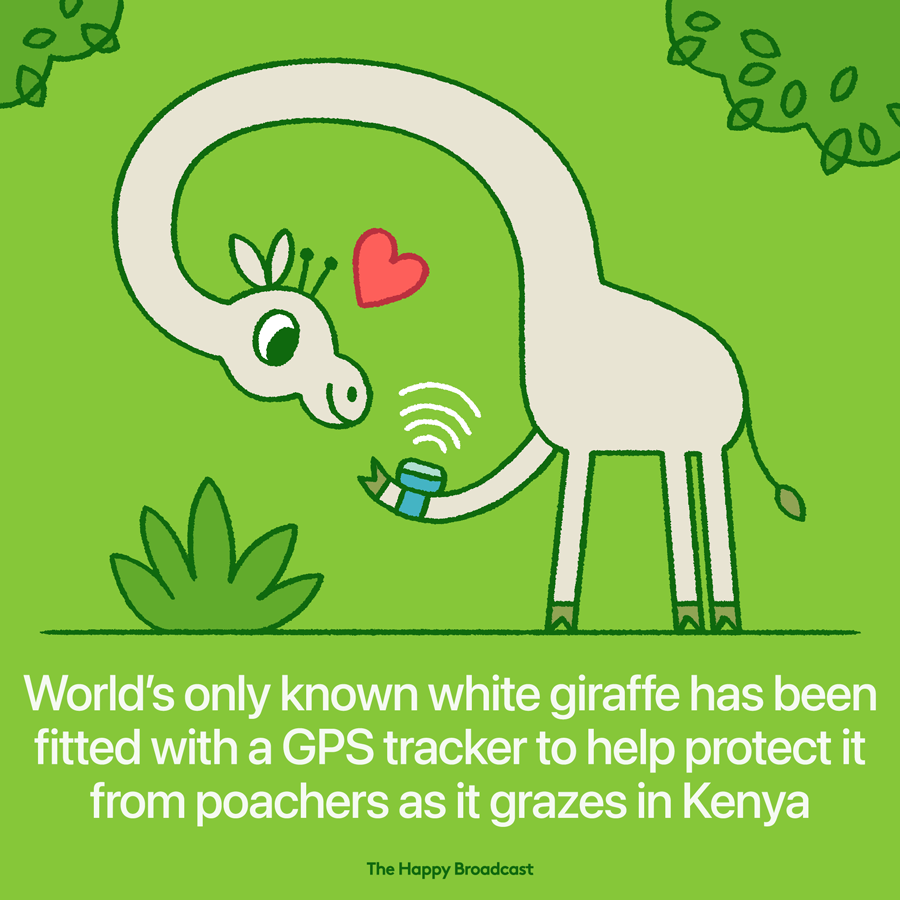 A conservation group said rangers could monitor the lone male giraffe’s movements in real time. The giraffe has a rare genetic condition called leucism, which causes the loss of skin pigmentation.