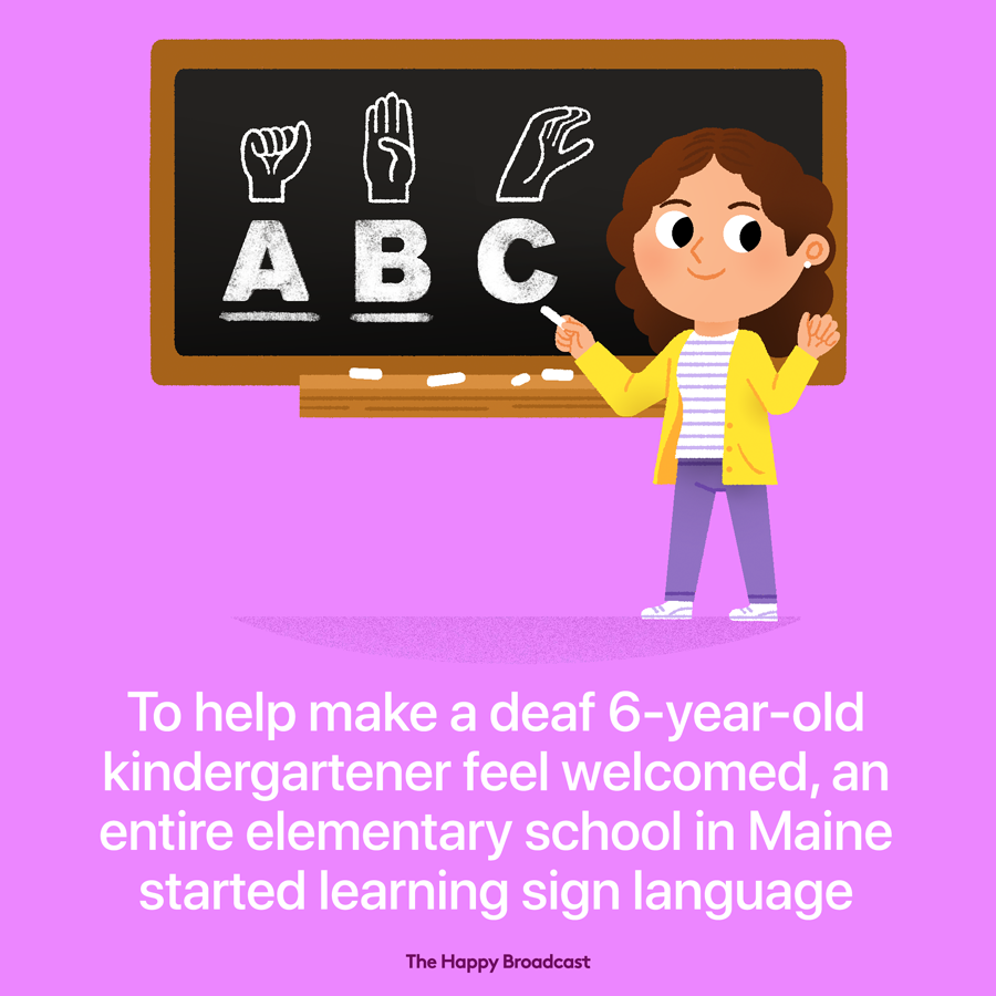 At Dayton Consolidated School in Maine, one student has inspired a big change to the curriculum. Morey Belanger, a 6-year-old kindergartener, is the school’s first deaf student. To make her feel welcome, the school embraced the opportunity to teach all the students some sign language.